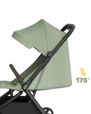 Le dossier de la poussette Finch peut être facilement ajusté d’une position assise à une position allongée, avec une plage de réglage maximale allant jusqu’à 175 degrés. Les parents peuvent ajuster librement la position du dossier pour que bébé se sente à l’aise dans la poussette.